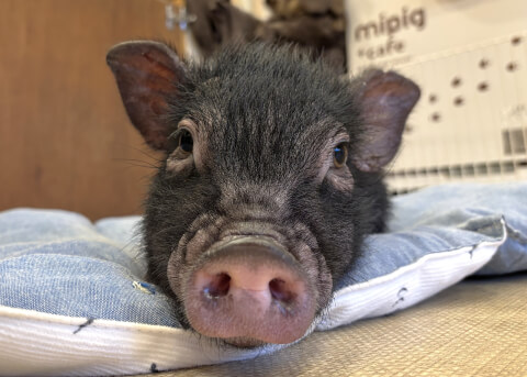 マイクロチップを装着し、日本獣医師会が管理するデータベースに登録。ブタさんが迷子になり保護されたときに身元確認が可能。