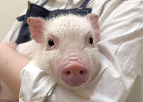 マイクロチップを装着し、日本獣医師会が管理するデータベースに登録。ブタさんが迷子になり保護されたときに身元確認が可能。