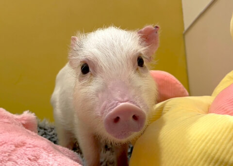 マイクロチップを装着し、日本獣医師会が管理するデータベースに登録。ブタさんが迷子になり保護されたときに身元確認が可能。