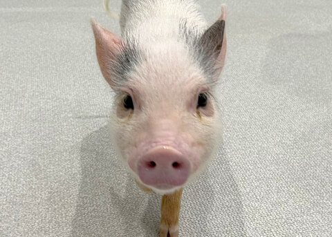 マイクロチップを装着し、日本獣医師会が管理するデータベースに登録。ブタさんが迷子になり保護されたときに身元確認が可能。