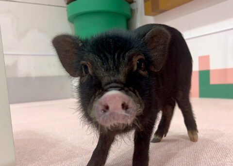 マイクロチップを装着し、日本獣医師会が管理するデータベースに登録。ブタさんが迷子になり保護されたときに身元確認が可能。