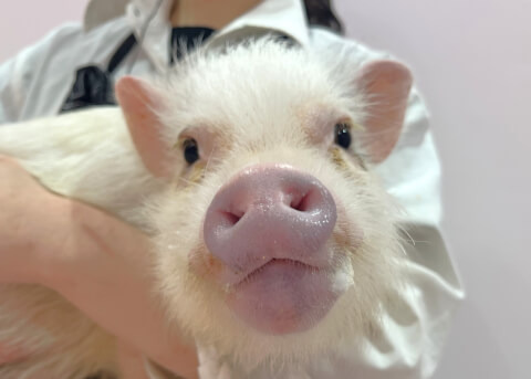 マイクロチップを装着し、日本獣医師会が管理するデータベースに登録。ブタさんが迷子になり保護されたときに身元確認が可能。