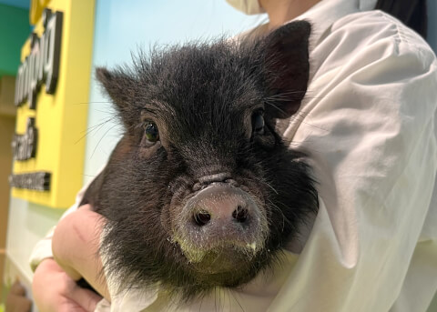 マイクロチップを装着し、日本獣医師会が管理するデータベースに登録。ブタさんが迷子になり保護されたときに身元確認が可能。