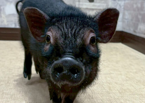 マイクロチップを装着し、日本獣医師会が管理するデータベースに登録。ブタさんが迷子になり保護されたときに身元確認が可能。