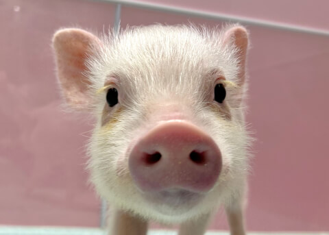 マイクロチップを装着し、日本獣医師会が管理するデータベースに登録。ブタさんが迷子になり保護されたときに身元確認が可能。