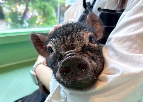 マイクロチップを装着し、日本獣医師会が管理するデータベースに登録。ブタさんが迷子になり保護されたときに身元確認が可能。