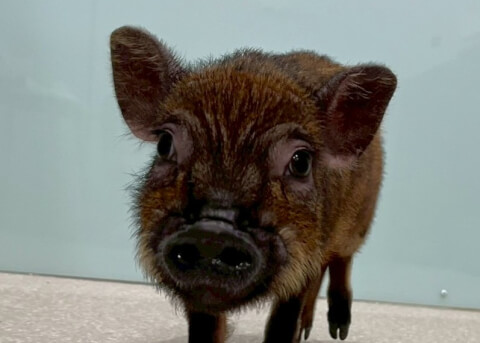 マイクロチップを装着し、日本獣医師会が管理するデータベースに登録。ブタさんが迷子になり保護されたときに身元確認が可能。
