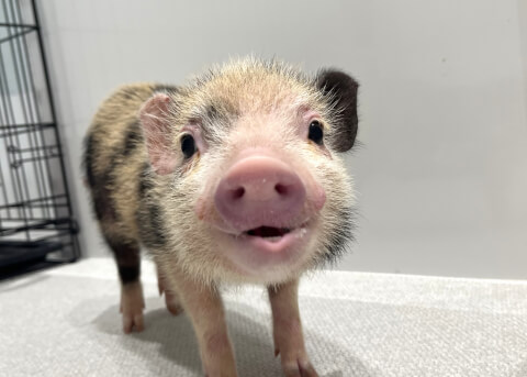 マイクロチップを装着し、日本獣医師会が管理するデータベースに登録。ブタさんが迷子になり保護されたときに身元確認が可能。