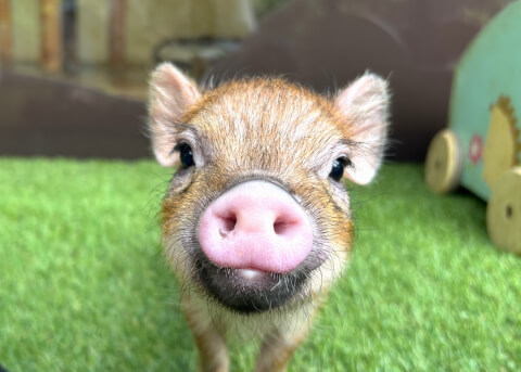 マイクロチップを装着し、日本獣医師会が管理するデータベースに登録。ブタさんが迷子になり保護されたときに身元確認が可能。