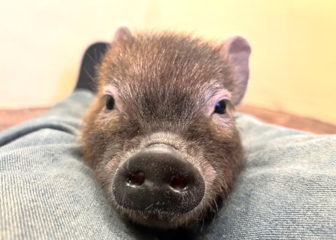 マイクロチップを装着し、日本獣医師会が管理するデータベースに登録。ブタさんが迷子になり保護されたときに身元確認が可能。