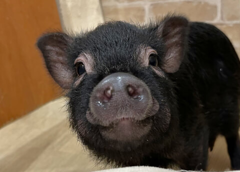 マイクロチップを装着し、日本獣医師会が管理するデータベースに登録。ブタさんが迷子になり保護されたときに身元確認が可能。