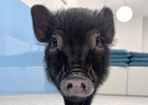 マイクロチップを装着し、日本獣医師会が管理するデータベースに登録。ブタさんが迷子になり保護されたときに身元確認が可能。