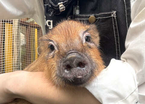 マイクロチップを装着し、日本獣医師会が管理するデータベースに登録。ブタさんが迷子になり保護されたときに身元確認が可能。