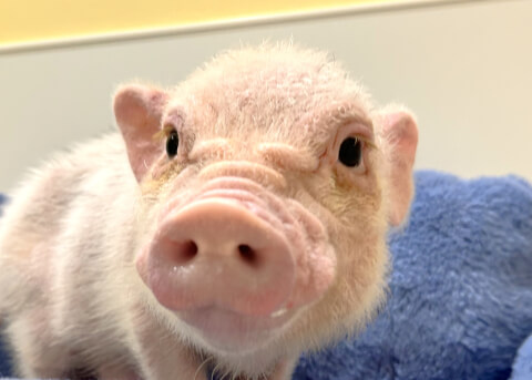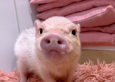 マイクロチップを装着し、日本獣医師会が管理するデータベースに登録。ブタさんが迷子になり保護されたときに身元確認が可能。
