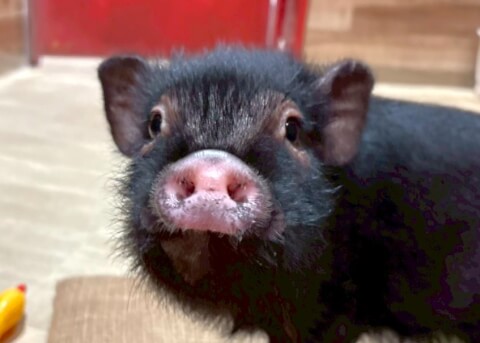 マイクロチップを装着し、日本獣医師会が管理するデータベースに登録。ブタさんが迷子になり保護されたときに身元確認が可能。