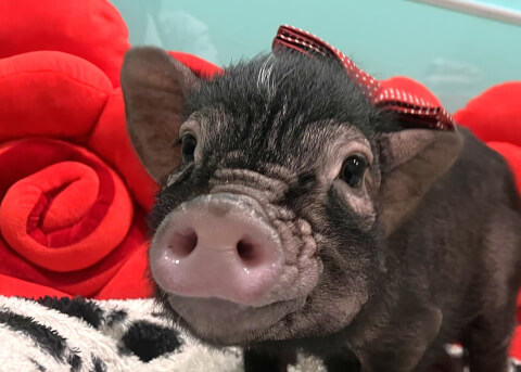 マイクロチップを装着し、日本獣医師会が管理するデータベースに登録。ブタさんが迷子になり保護されたときに身元確認が可能。