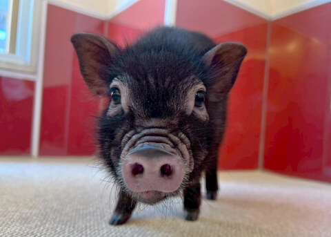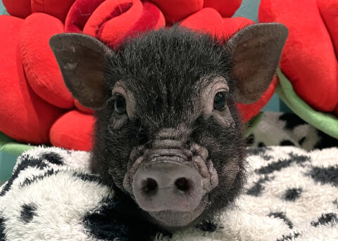 マイクロチップを装着し、日本獣医師会が管理するデータベースに登録。ブタさんが迷子になり保護されたときに身元確認が可能。