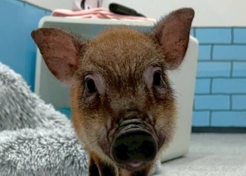マイクロチップを装着し、日本獣医師会が管理するデータベースに登録。ブタさんが迷子になり保護されたときに身元確認が可能。