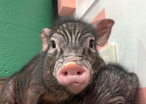 マイクロチップを装着し、日本獣医師会が管理するデータベースに登録。ブタさんが迷子になり保護されたときに身元確認が可能。