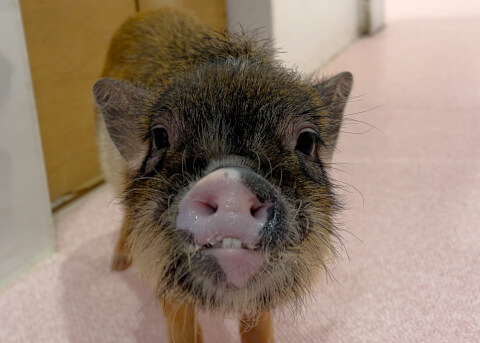 マイクロチップを装着し、日本獣医師会が管理するデータベースに登録。ブタさんが迷子になり保護されたときに身元確認が可能。