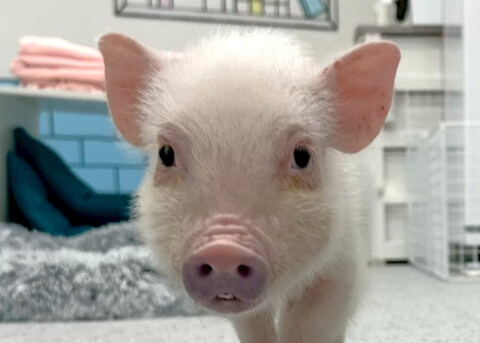 マイクロチップを装着し、日本獣医師会が管理するデータベースに登録。ブタさんが迷子になり保護されたときに身元確認が可能。