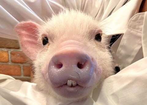 マイクロチップを装着し、日本獣医師会が管理するデータベースに登録。ブタさんが迷子になり保護されたときに身元確認が可能。