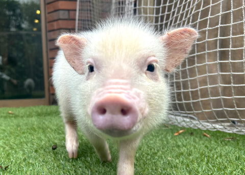 マイクロチップを装着し、日本獣医師会が管理するデータベースに登録。ブタさんが迷子になり保護されたときに身元確認が可能。