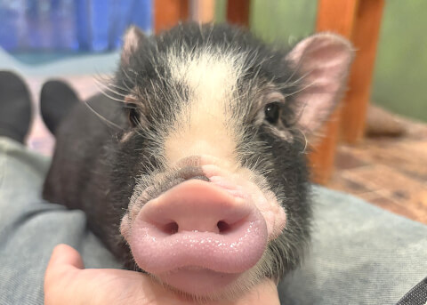 マイクロチップを装着し、日本獣医師会が管理するデータベースに登録。ブタさんが迷子になり保護されたときに身元確認が可能。