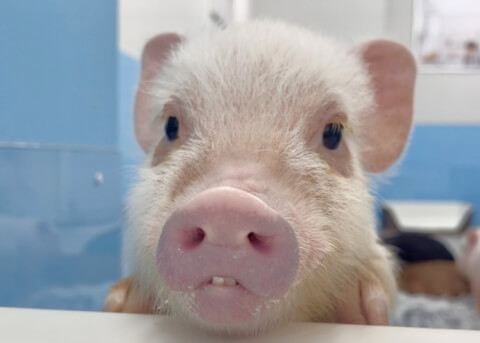 マイクロチップを装着し、日本獣医師会が管理するデータベースに登録。ブタさんが迷子になり保護されたときに身元確認が可能。