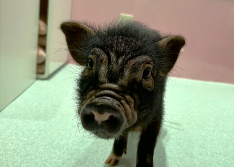 マイクロチップを装着し、日本獣医師会が管理するデータベースに登録。ブタさんが迷子になり保護されたときに身元確認が可能。