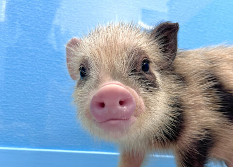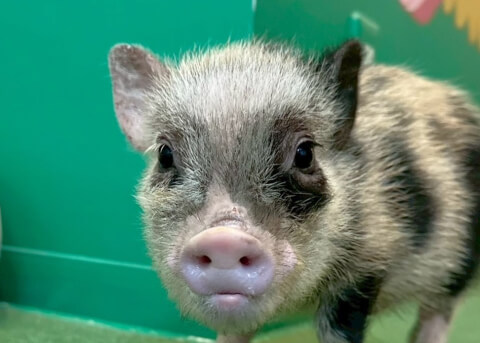 マイクロチップを装着し、日本獣医師会が管理するデータベースに登録。ブタさんが迷子になり保護されたときに身元確認が可能。