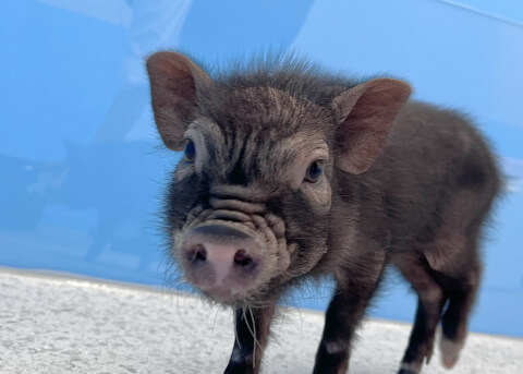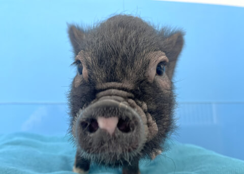 マイクロチップを装着し、日本獣医師会が管理するデータベースに登録。ブタさんが迷子になり保護されたときに身元確認が可能。
