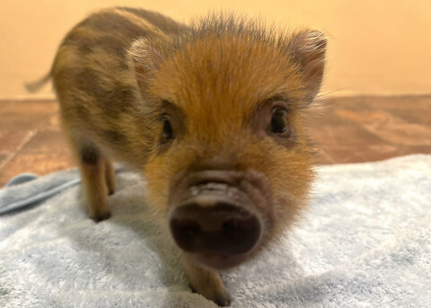 マイクロチップを装着し、日本獣医師会が管理するデータベースに登録。ブタさんが迷子になり保護されたときに身元確認が可能。