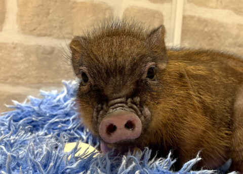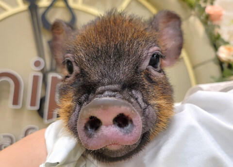 マイクロチップを装着し、日本獣医師会が管理するデータベースに登録。ブタさんが迷子になり保護されたときに身元確認が可能。