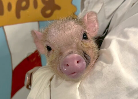 マイクロチップを装着し、日本獣医師会が管理するデータベースに登録。ブタさんが迷子になり保護されたときに身元確認が可能。