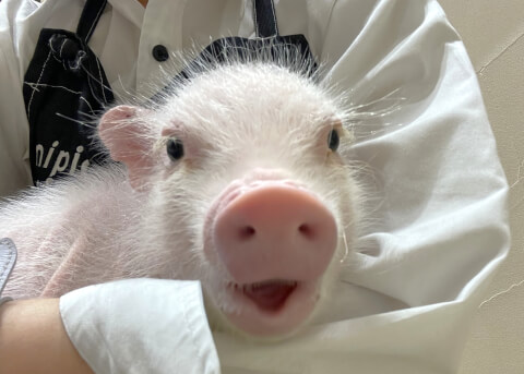 マイクロチップを装着し、日本獣医師会が管理するデータベースに登録。ブタさんが迷子になり保護されたときに身元確認が可能。