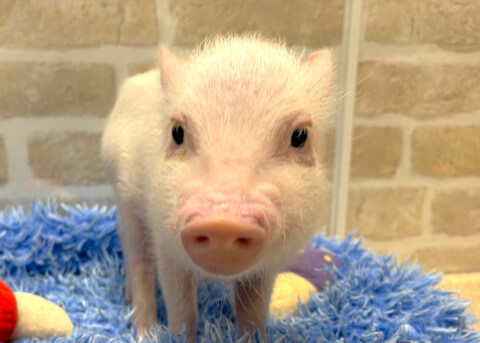 マイクロチップを装着し、日本獣医師会が管理するデータベースに登録。ブタさんが迷子になり保護されたときに身元確認が可能。