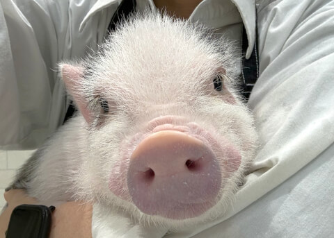 マイクロチップを装着し、日本獣医師会が管理するデータベースに登録。ブタさんが迷子になり保護されたときに身元確認が可能。