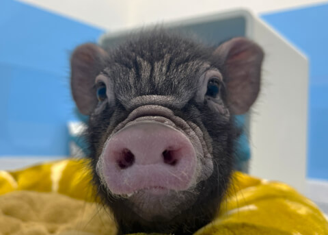 マイクロチップを装着し、日本獣医師会が管理するデータベースに登録。ブタさんが迷子になり保護されたときに身元確認が可能。