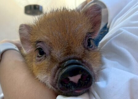 マイクロチップを装着し、日本獣医師会が管理するデータベースに登録。ブタさんが迷子になり保護されたときに身元確認が可能。