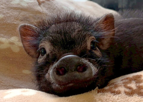 マイクロチップを装着し、日本獣医師会が管理するデータベースに登録。ブタさんが迷子になり保護されたときに身元確認が可能。