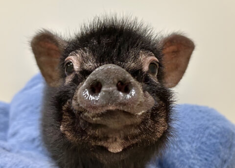 マイクロチップを装着し、日本獣医師会が管理するデータベースに登録。ブタさんが迷子になり保護されたときに身元確認が可能。