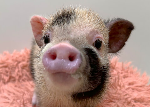 マイクロチップを装着し、日本獣医師会が管理するデータベースに登録。ブタさんが迷子になり保護されたときに身元確認が可能。
