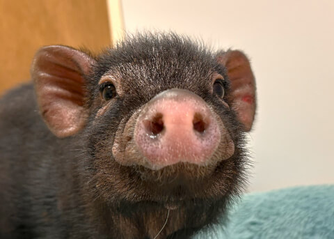 マイクロチップを装着し、日本獣医師会が管理するデータベースに登録。ブタさんが迷子になり保護されたときに身元確認が可能。