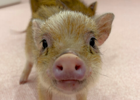 マイクロチップを装着し、日本獣医師会が管理するデータベースに登録。ブタさんが迷子になり保護されたときに身元確認が可能。