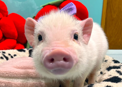 マイクロチップを装着し、日本獣医師会が管理するデータベースに登録。ブタさんが迷子になり保護されたときに身元確認が可能。