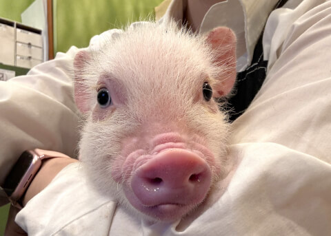 マイクロチップを装着し、日本獣医師会が管理するデータベースに登録。ブタさんが迷子になり保護されたときに身元確認が可能。