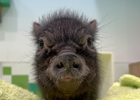 マイクロチップを装着し、日本獣医師会が管理するデータベースに登録。ブタさんが迷子になり保護されたときに身元確認が可能。