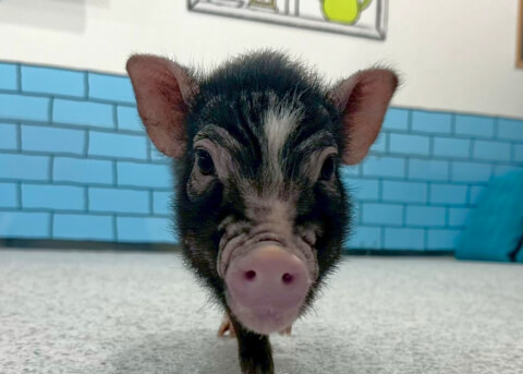 マイクロチップを装着し、日本獣医師会が管理するデータベースに登録。ブタさんが迷子になり保護されたときに身元確認が可能。