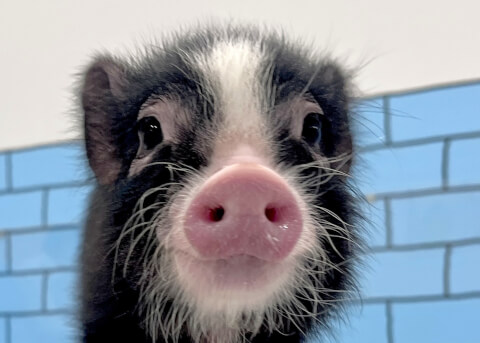 マイクロチップを装着し、日本獣医師会が管理するデータベースに登録。ブタさんが迷子になり保護されたときに身元確認が可能。